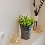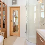 En separat toalett och en dusch erbjuds på boendet och garanterar en bekväm vistelse. Det finns också badmössor, badlakan och handdukar.